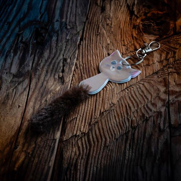 Safely travel to school or daycare with Albert as your companion. This sweet reflector charm is shaped like a cat with a soft "fake fur" tail.