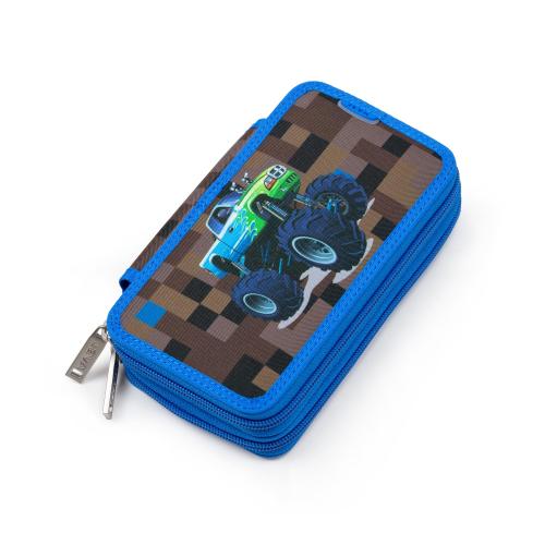 Brand new monster truck schoolbag from the 2022 collection. This schoolbag is made of waterproof polyester with a beautiful full colour printed pattern in blue, black and brown colours. There is a cool, big monster truck picture on the sports bag, and on the schoolbag there is a dangerous dragon monster truck! Back, bindings, and straps are all in a cool blue contrast colour. Trimmings and strings are also black.