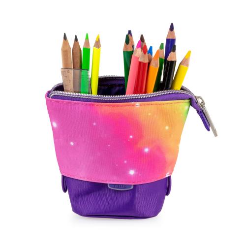 It also features an exterior compartment for a large pencil case and a transparent pocket on the side.