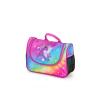 Alicorn schoolbag from the 2022 collection. The beautiful print with the purple alicorn (unicorn with wings) is placed on the front of the schoolbag and the sports bag. The schoolbag is made of waterproof polyester with a beautiful rainbow print. Bindings and straps are purple with silver glitter. Trimmings, back and strings are also a beautiful purple. Suitable for primary school juniors.